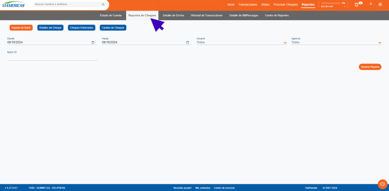Ya sea por reporte de batch, detalles del cheque, cheques retornados o cambio de cheques.